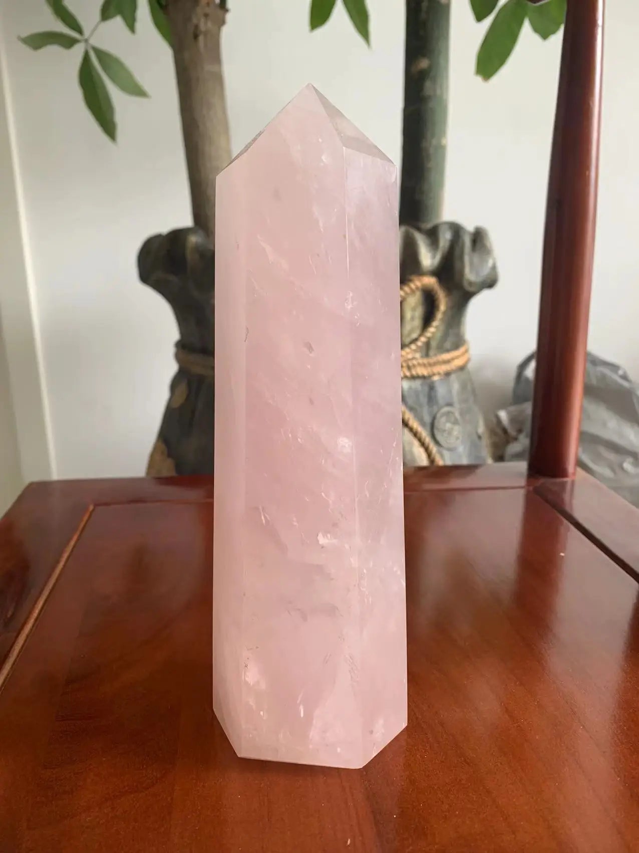 Natural Aura Rose Quartz Crystal Chakra Tower